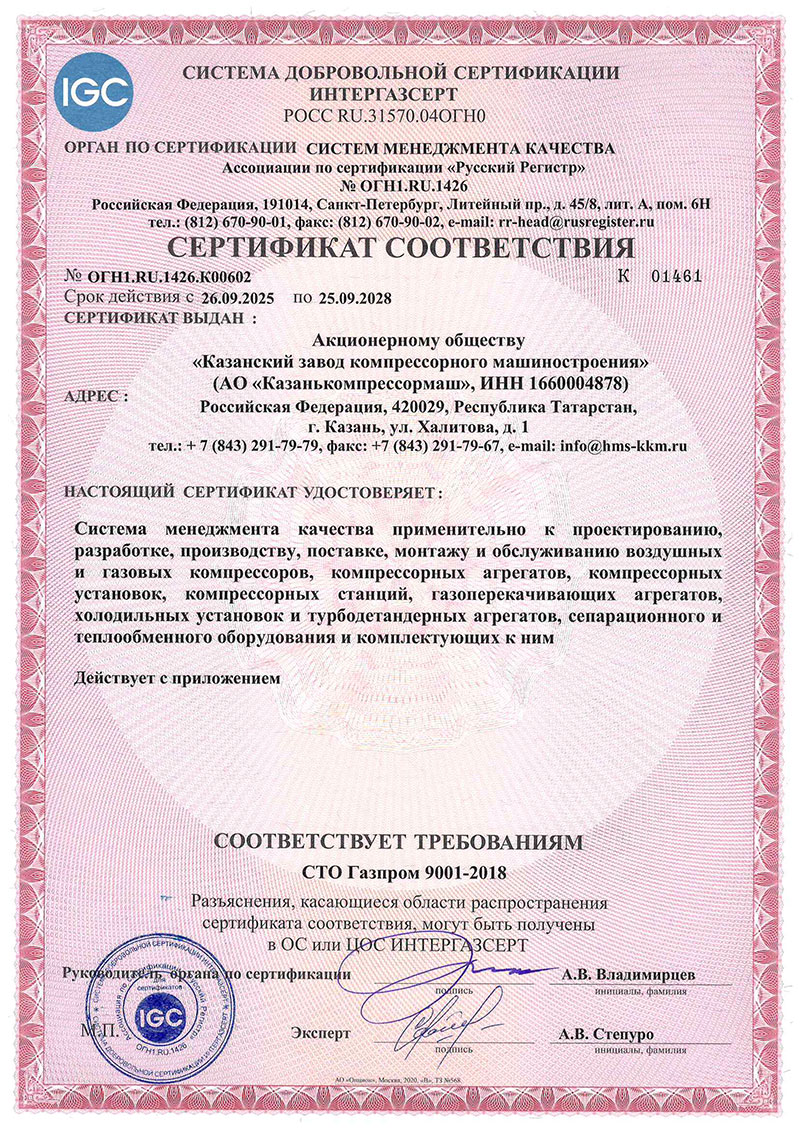 Основной целью АО «Казанькомпрессормаш» является обеспечение гарантированно высокого качества изготавливаемого оборудования и предоставляемых услуг.